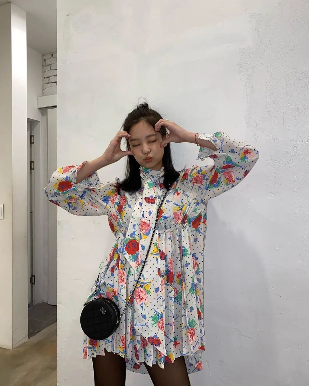 Jennie教你如何同时抓住性感和可爱。嫌简约的碎花连衣裙太婉约?搭配一双狂野十足的过膝长靴,令人想喊一声“姐姐爱我!”