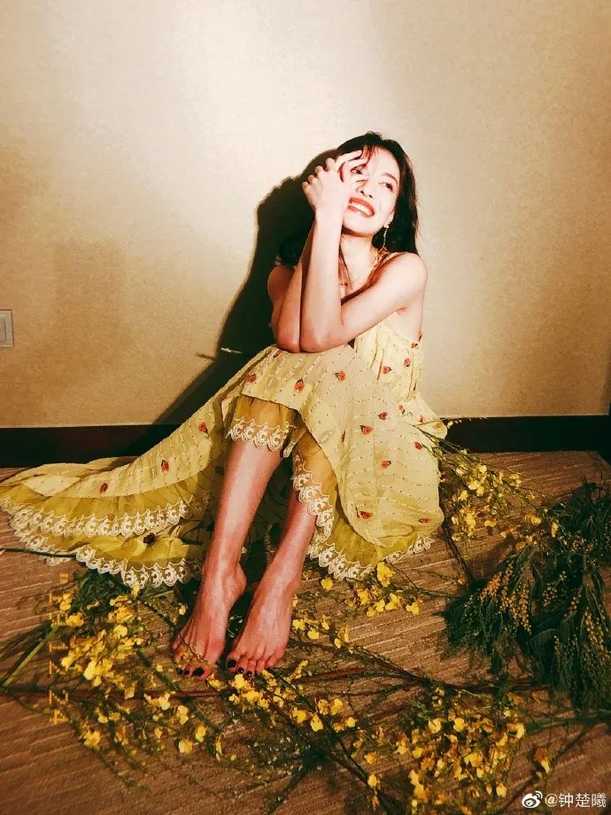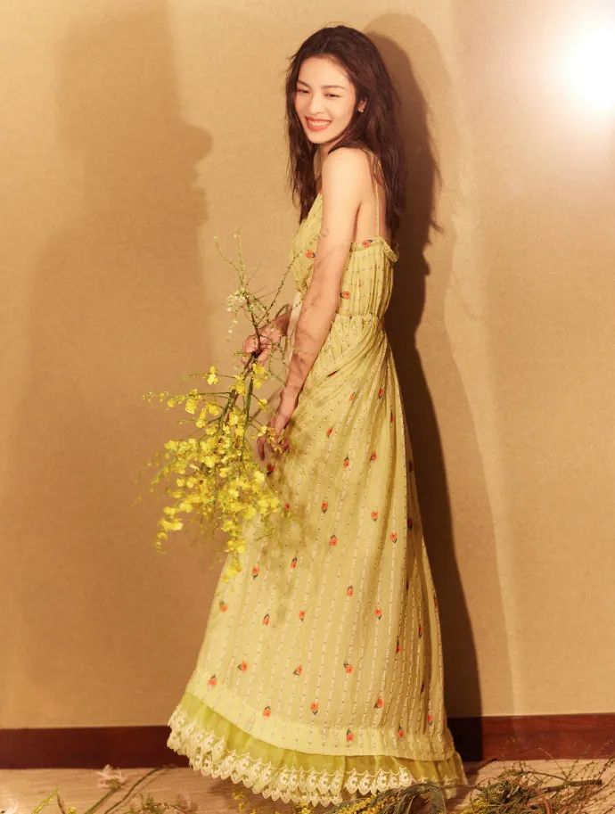 钟楚曦这条Chloe碎花长裙,把婀娜身姿衬托地柔软妩媚,骨干的女生可以尝试。