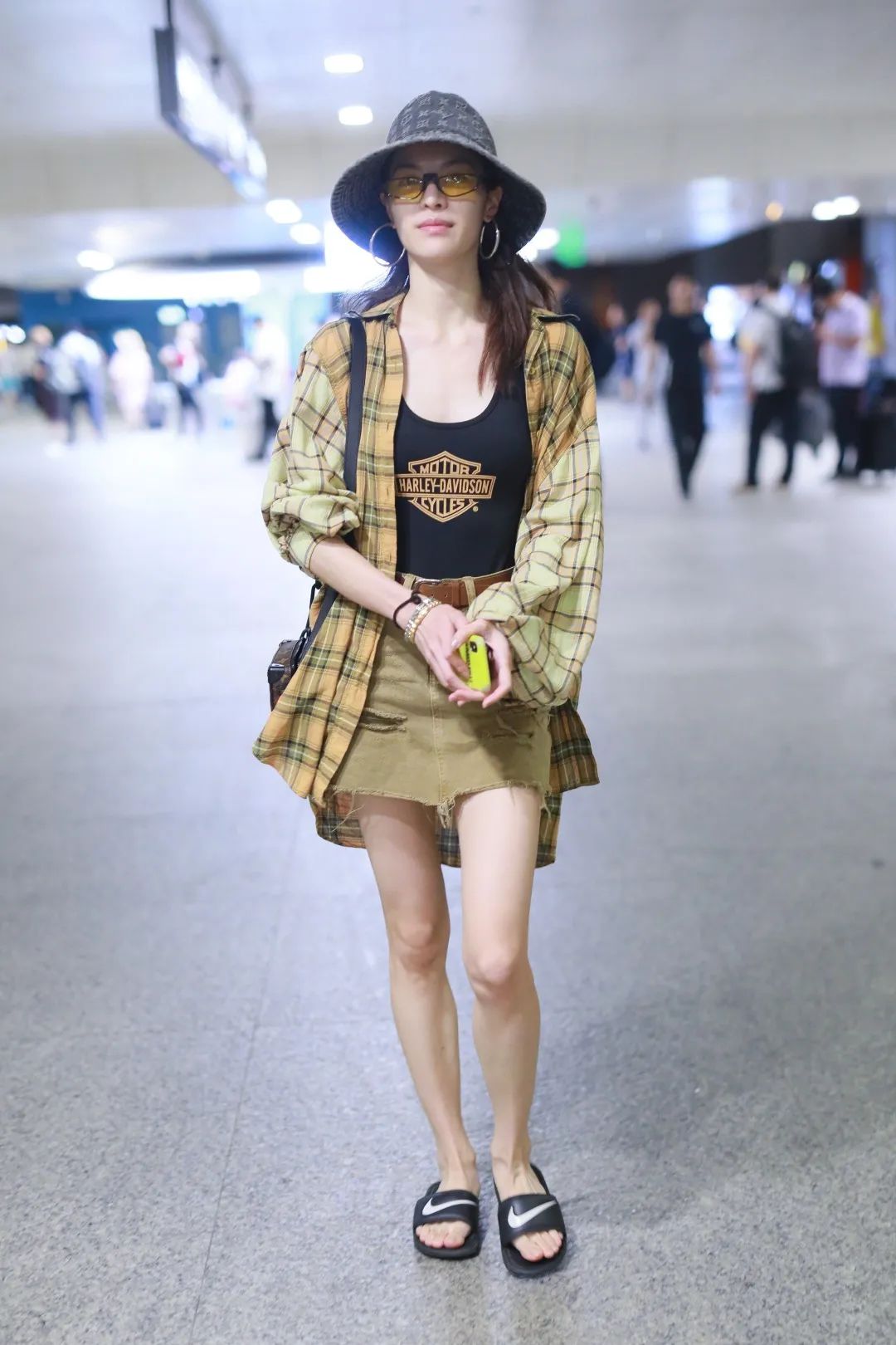 想随性点,学下钟楚曦,格纹衬衫搭一条牛仔布短裙,不羁的小妞。