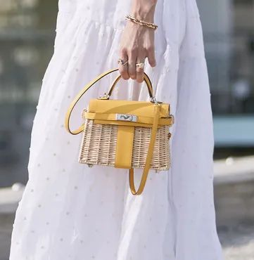 时尚顾问 Pernille Teisbaek这款Hermes Kelly迷你手袋,包身采用编织设计,搭配一袭长裙,足够夏日风情,且适合各种场合。