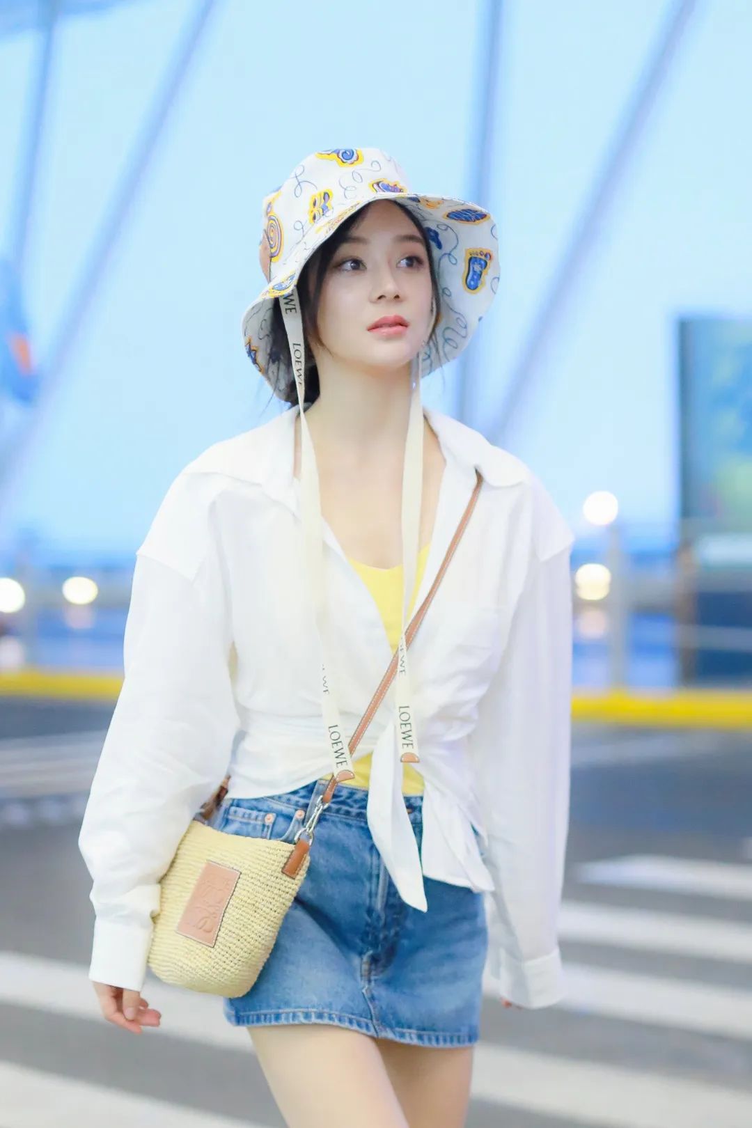 就是有活力四射的妹子爱斜背款,袁姗姗这款LOEWE斜挎草编包就很适合。