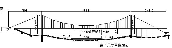 虎门大桥主航道桥为跨径888m的单跨双铰加劲钢箱梁悬索桥。桥跨布置为302+888+348.5m。