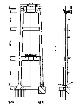 索塔塔身采用门式框架结构,由两侧塔柱及中间的三道系梁组成,塔柱为钢筋混凝土空心薄壁结构,系梁为预应力混凝土空心薄壁结构。桥面以上89.86m,基顶以上147.55m,高跨比1/6。