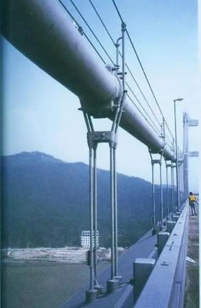 (4)首次在国内成功设计、制作、架设了每股127丝的大型预制索股及大型铸焊组合型主、散索鞍。