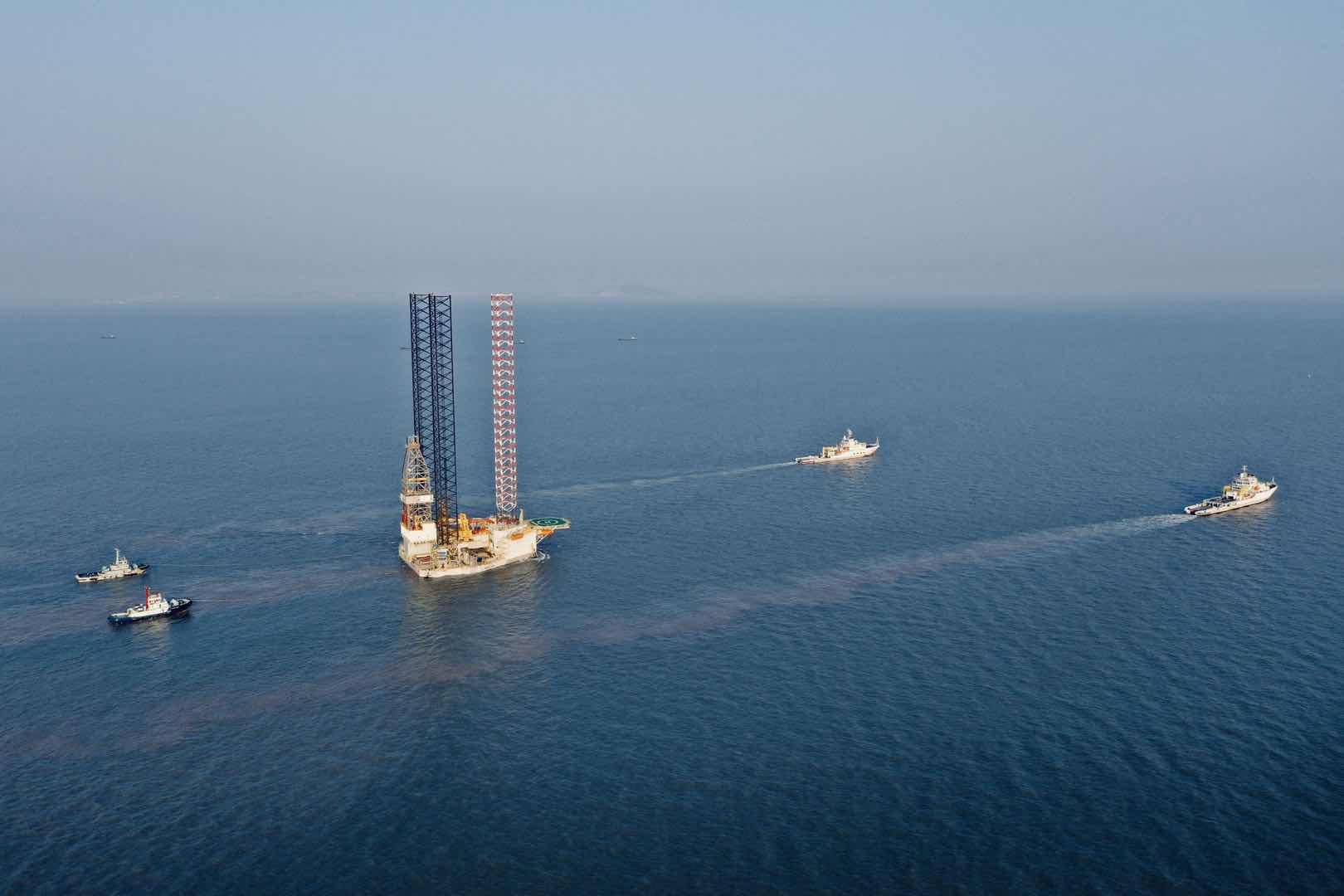 今天,价值2.37亿美元石油钻井平台从东海绿华山锚地启航
