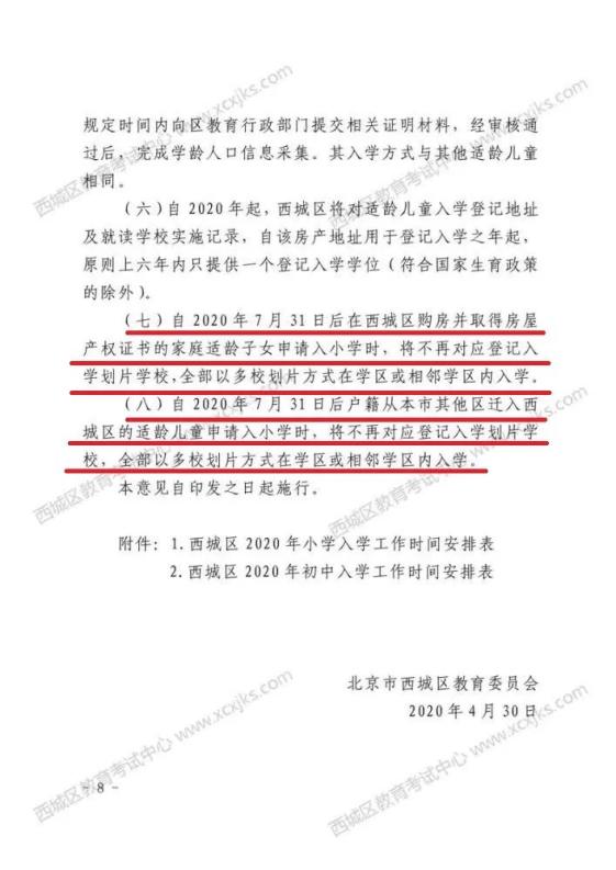 2020年起实行小学升初中招生改革,在部分试点学校实行多校划片。