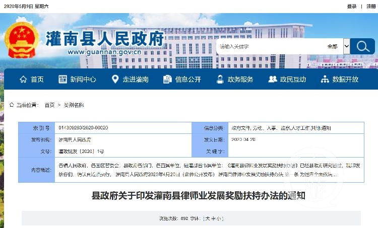 灌南县政府官网发布的《灌南县律师业发展奖励扶持办法》显示,县内律师事务所吸引外地户籍律师到该县律师事务所执业的、外地律师事务所到灌南县开设分所的将给予一次性现金奖励,并给予生活补助。同时,还将对新设立律师事务所给予相应的扶持政策。