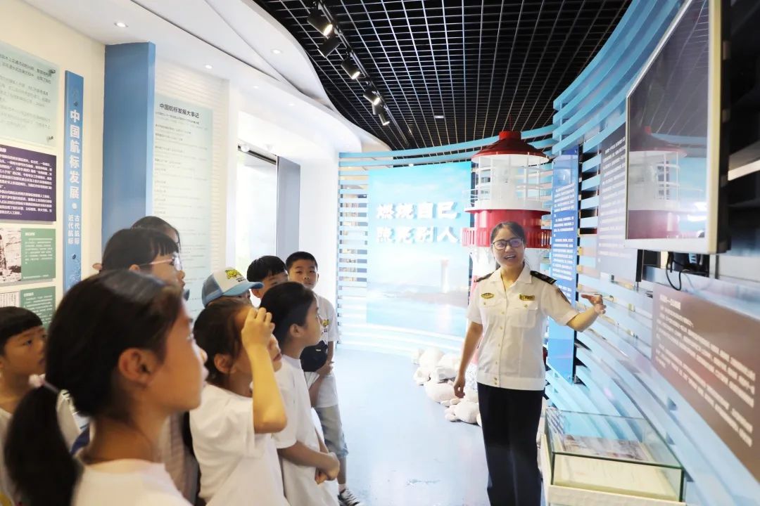 航标知识课堂:发挥温州航标文化馆、视觉航标展示训练区、仿真灯桩和灯浮训练场等场地优势,宣传海事文化、航标文化,教授学生穿救生衣、打旗语,带领学生参观海巡船,开展“水上交通安全知识进校园”。