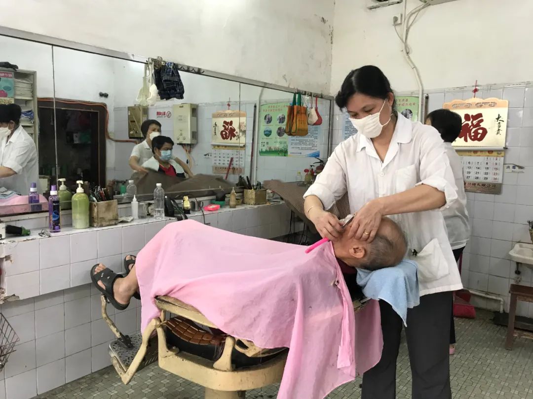 从事传统理发业已有近四十年的李姨先后被分配至大明星理发店和冠芳理发店,她回忆道,尽管店铺名声不大,但每逢春节前夕,前来冠芳理发店修剪头发的顾客仍挤满过道,里外排了三层队。