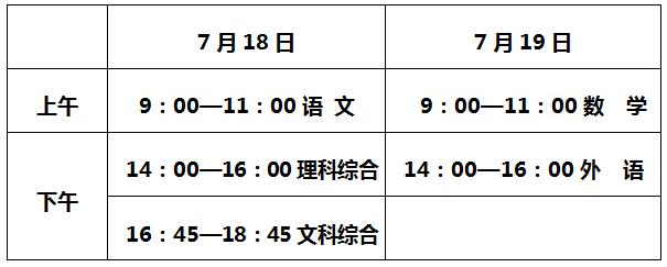 一、全省中考7月18日—19日举行。具体安排为: