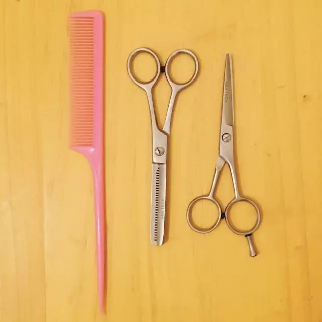 工欲善其事,必先利其器,好的理发师的剪刀一定也是很好的,但是我们剪个刘海儿也没那么多事儿,买一对质量还行的普通平剪加牙剪的组合就足够了。梳子可以选择齿细且密的,最好带一个细长的梳柄,方便给头发分线,几块钱的塑料梳就好!