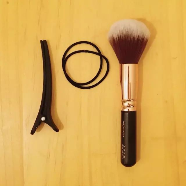 然后是一些辅助工具。皮筋可以扎起不用剪的部分,防止碍事和误剪,要分区剪刘海的人会需要发夹,而大面部刷可以用来扫去掉在皮肤上的碎发。