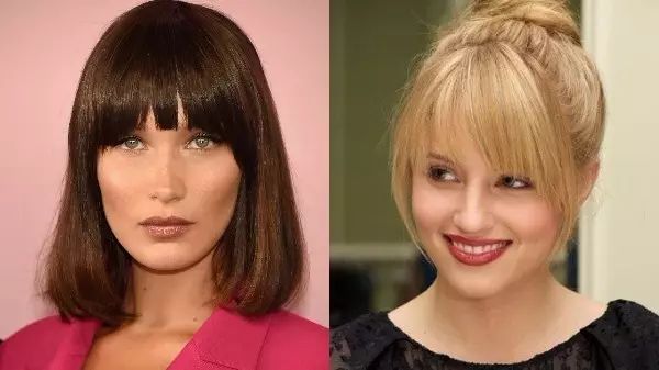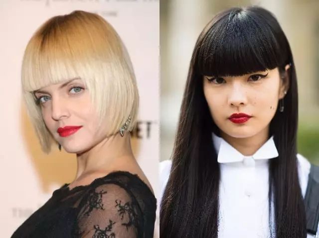 厚重的齐刘海儿根据个人气质可以很时髦,也可能显土气。图左刘海较窄,收脸,图右刘海儿宽,脸大别尝试。