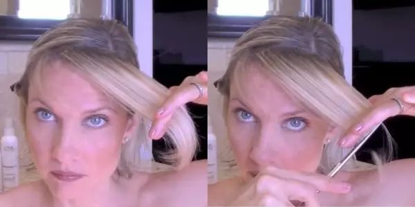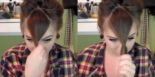 修剪弧形刘海儿还有上图这种偏方,就是捏住刘海底端拧一圈,让它变成麻花状。