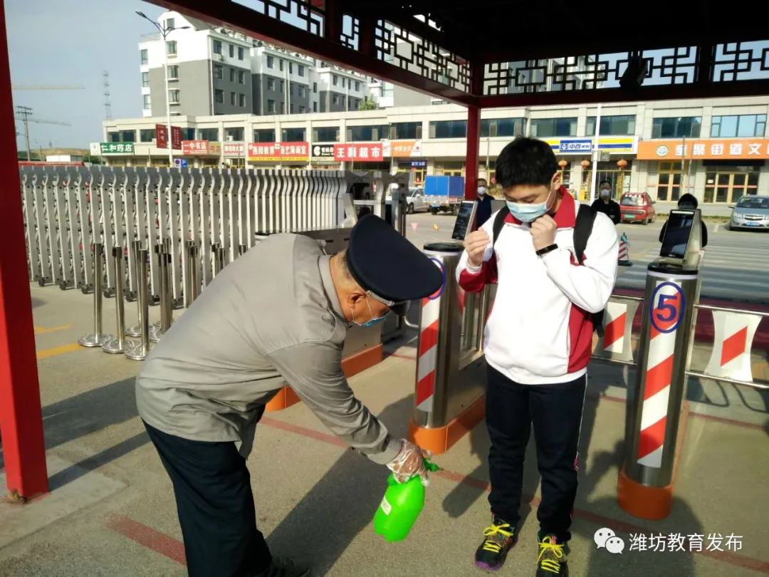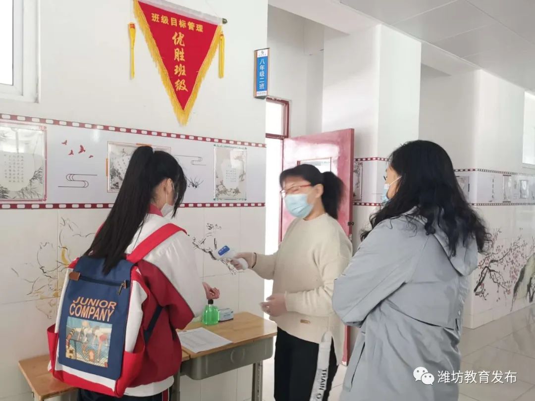 开学当日,奎文区辖区内复学的9所初中学校3600余名学生,在学校教师的引导下,根据相关要求,排队完成测温等事项,安全有序入校入教室。