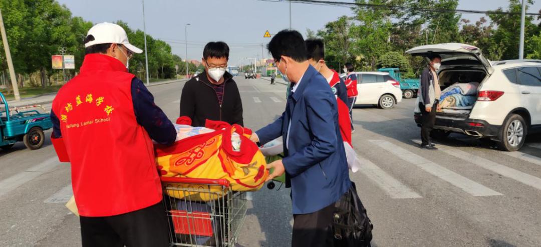 潍坊实验中学校长帮助学生搬运行李