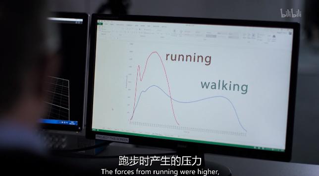 为此他做了一组实验,让迈克尔在膝盖部位戴上捕捉器,然后在指定位置走一段距离,然后再跑一段距离,比较两者对膝盖的压力。