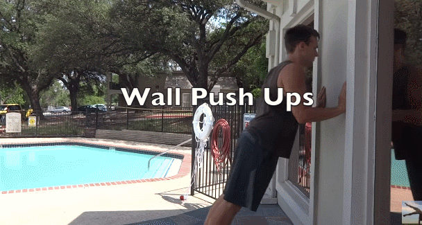 1.墙壁俯卧撑,每组50个,做2组。双脚并拢,身体呈一条直线,保持一定额频率逐步俯卧。如果觉得难度过小,身体可以远离墙壁一些;