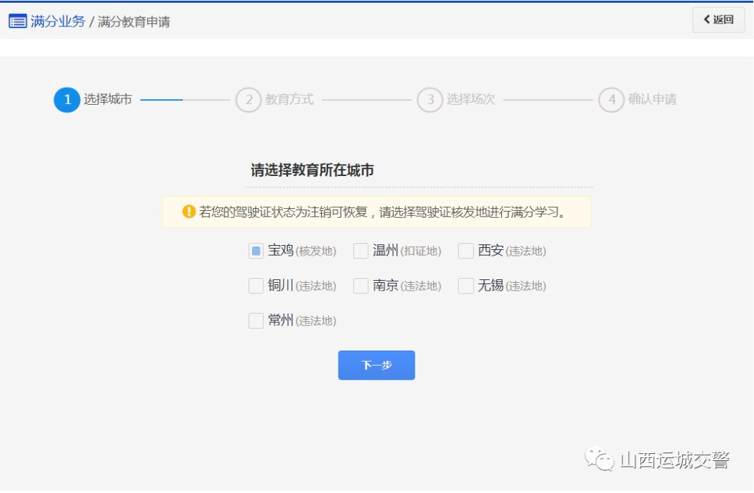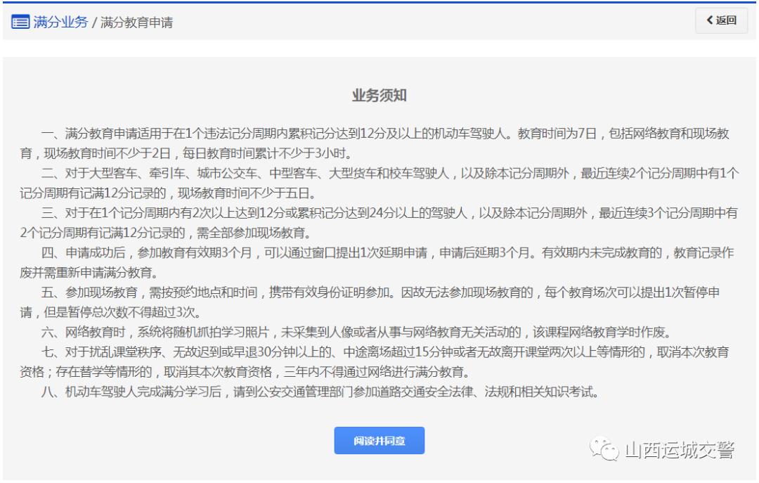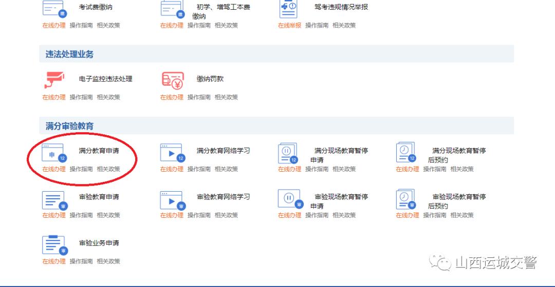 答:目前可通过电脑端的12123交通安全综合服务平台申请满分教育,登录“山西公安厅交通管理局交通安全综合服务管理平台”(https://sx.122.gov.cn)