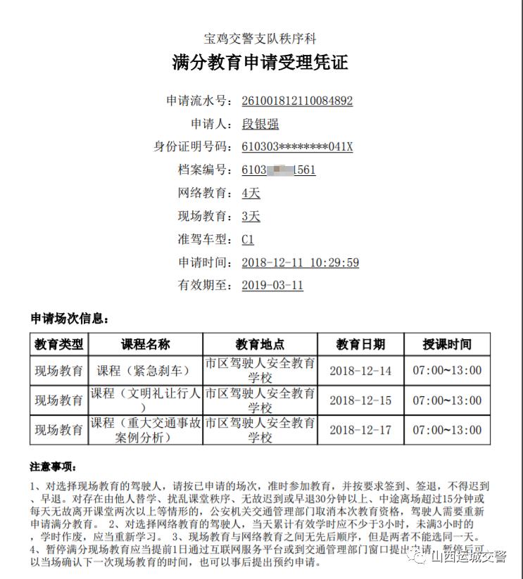 (2)申请成功后,参加教育有效期3个月,可以通过窗口提出1次延期申请,申请后延期3个月。有效期内未完成教育的,教育记录作废,需重新申请满分教育。