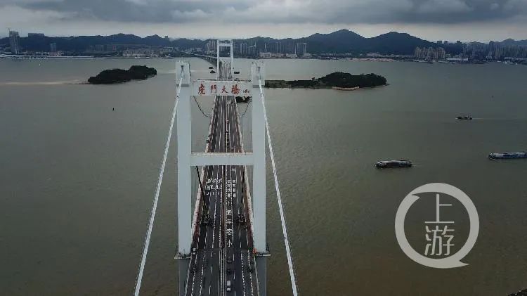 郑凯锋告诉上游新闻记者,虎门大桥原来设计交通量是日均8万车次,前些年交通量非常大,有时日均超过15万车次,有小段时间还有超载车辆。2019年4月南沙大桥(即虎门二桥)通车后已经分流的不少车流,特别是重车。