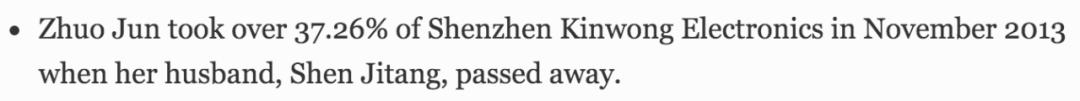 ▲ 最后一位卓军是深圳景旺电子沈继堂的太太,她在丈夫去世后继承了公司的股份,又因为股价大涨而新晋入榜,鉴于网上根本查不到更多的资料,我们就不细聊她了。
