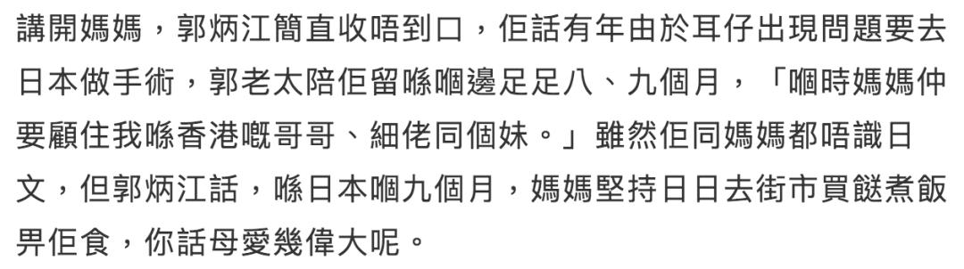 ▲ 郭老太陪着儿子去日本做手术,一呆就是九个月,每天去街市买菜煮饭,同时还要挂念在香港的哥哥妹妹,绝对是慈母情深。