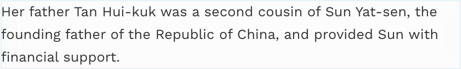 ▲ 而据福布斯报道,谭庆芬的父亲谭惠国是孙中山的表兄弟,曾经在经济上给予过他支持。两家说到底是门当户对的。