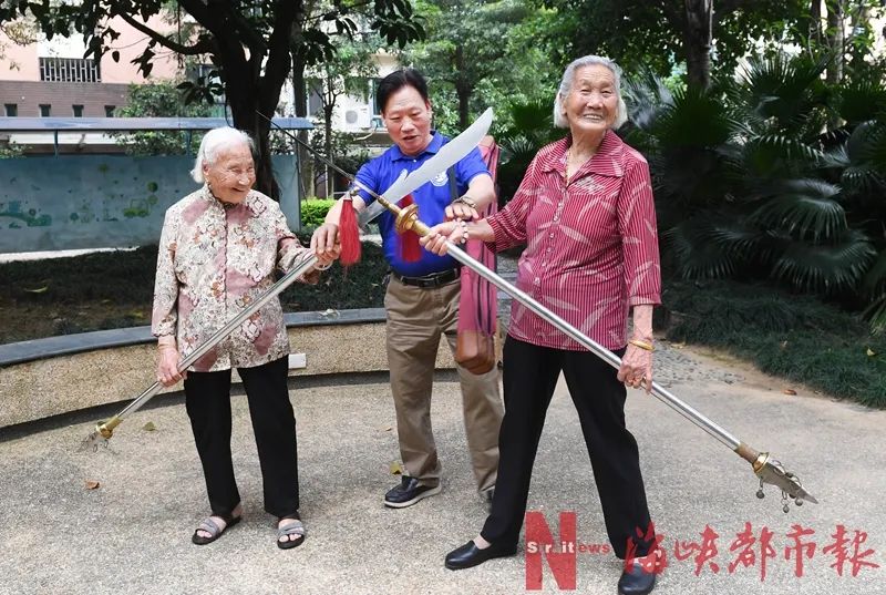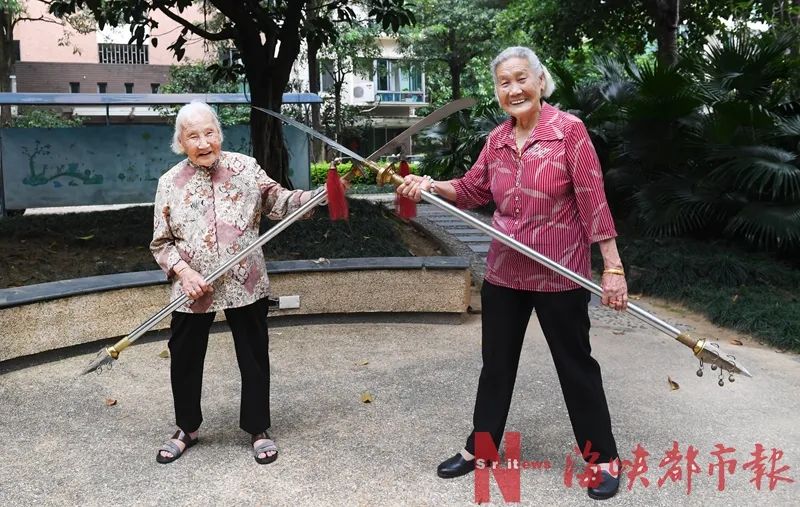 只见,两把大刀在姐妹花手中耍得是精彩绝伦……昨日下午,海都君来到福州仓山区江南水都小区,见到了101岁的黄敏端和94岁的林香妹。其实,她们俩是亲家。