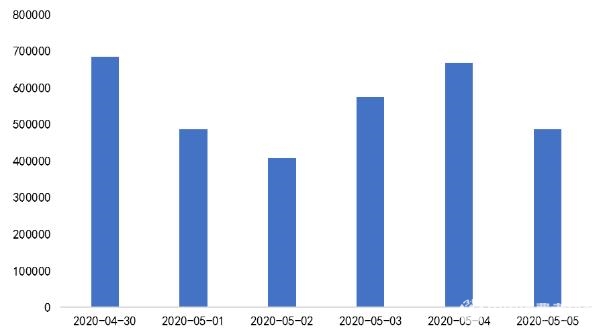 在4月30日至5月5日共计6天监测期内,共收集“五一”相关“消费维权”类信息3307913条,日均信息量55万余条。监测期间,“消费维权”信息表现为首尾偏高、中间偏低态势,4月30日最多,为684154条。