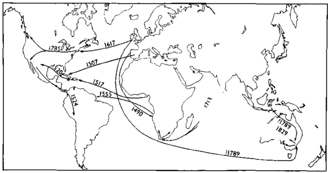 不过,直到15世纪,天花大本营仍局限在欧亚大陆、西非、北非,以及一些毗邻地区。