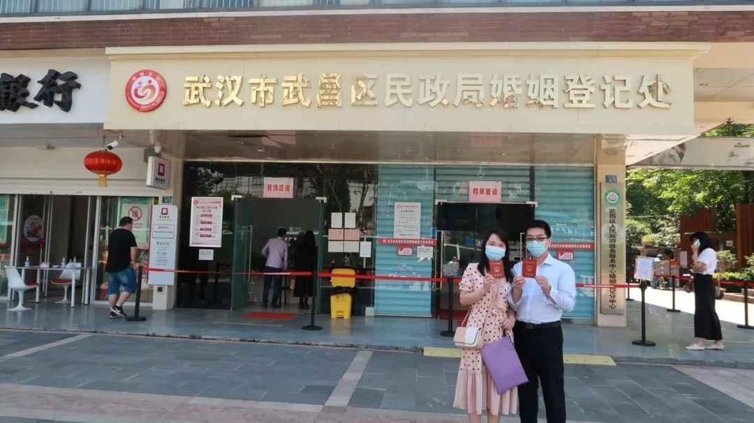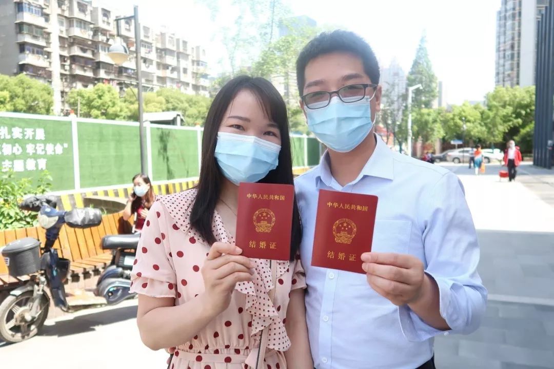 12日一早,两人约定去了武昌区婚姻登记中心。“10分钟就办完了。里面的工作人员跟我们解释,说是疫情防控期间流程从简,原先的登记合影也取消了。也算个小小的遗憾吧。”