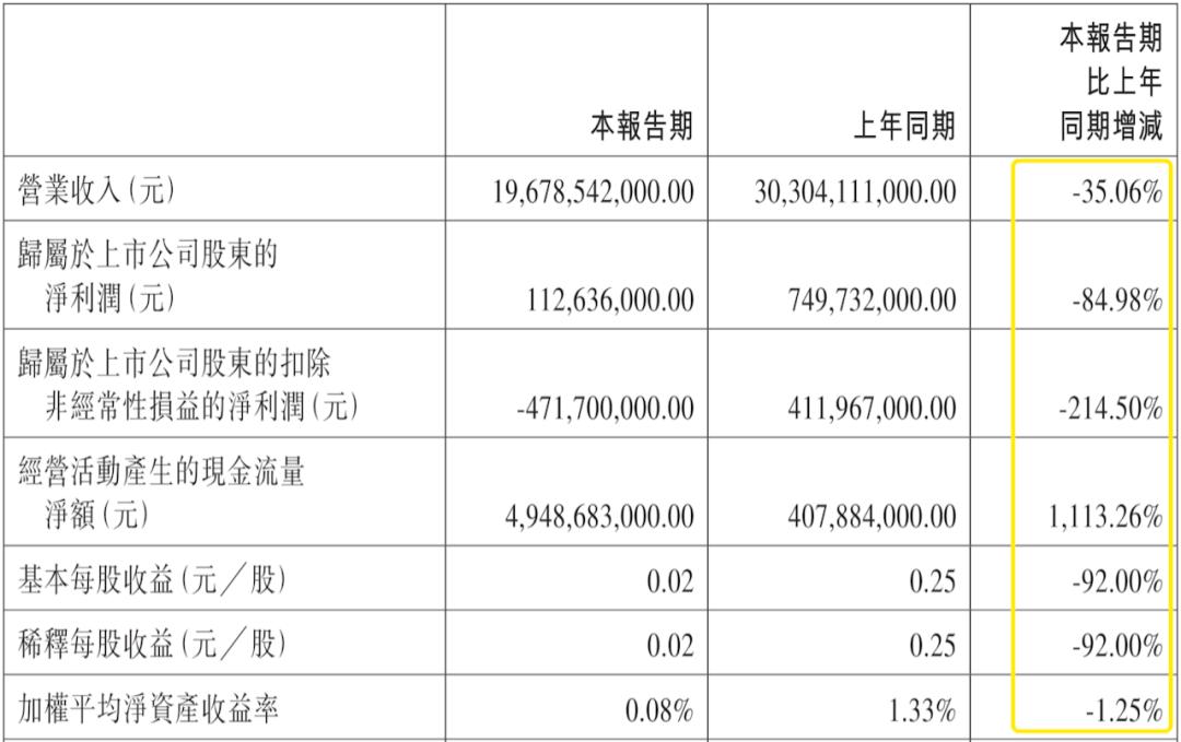 1、营业收入197亿元,同比下降35%。去年第三季度是316亿,对比之下,下降了119亿元。