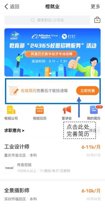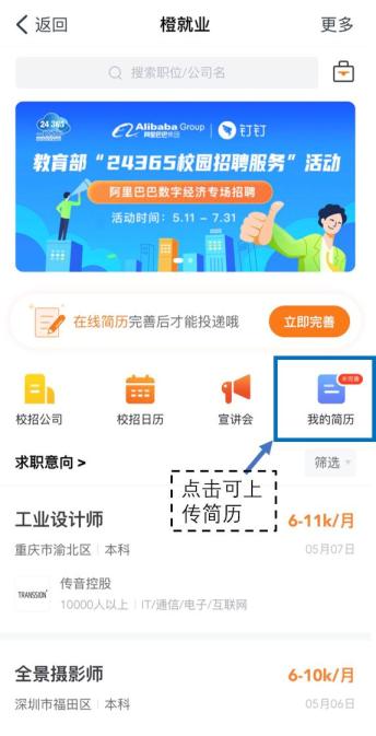 正式求职前需先完善简历(填写在线简历/上传附件简历)。