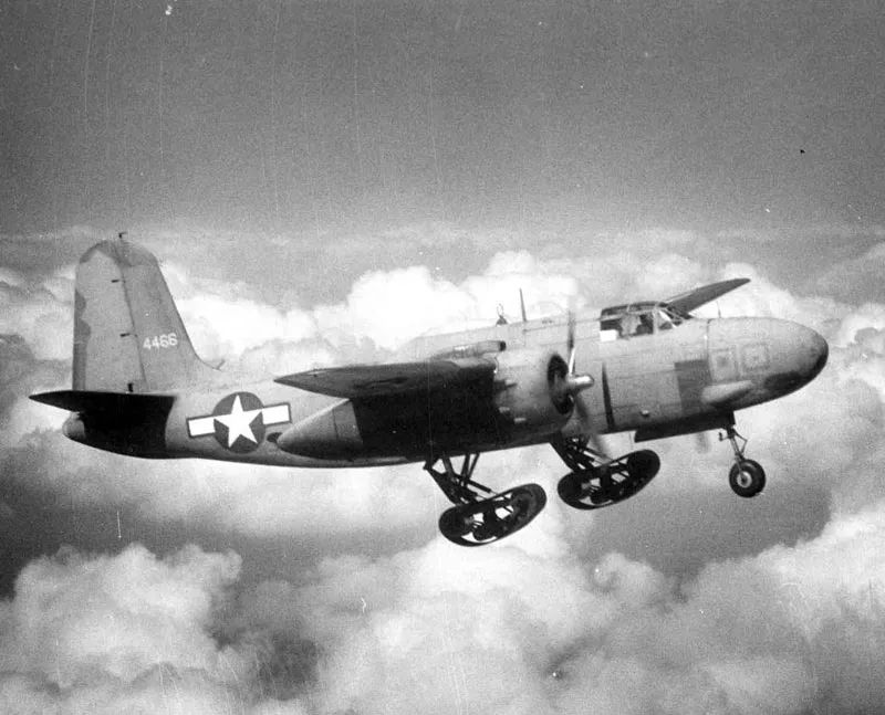 其实除了YB-36A之外,B-50和C-82同期也进行了相关实验。而在此之前,由道格拉斯公司生产的A-20“浩劫”攻击机在1947年也进行过履带式主起落架测试,与YB-36A不同,A-20“浩劫”进行了完整的“非加固道面(草地)起降试验”。试验中,A-20安装着卡特彼勒公司生产履带式主起落架从标准跑道起飞,以约200千米/小时的速度在跑道旁的草地上平稳降落,随后又成功的进行了起飞测试。因为A-20前起落架没有更换,所以滑跑时需稍微带杆抬头,以避免前轮陷入草地造成事故。A-20体型较小,因此履带式起落架的结构相对简单,每支履带组上仅有3个小承重轮、1个大承重轮和1个大定位轮,除履带内部轮组采用缓冲结构外,起落架支柱也采用鸭掌式设计,可极大减轻飞机在复杂道面受到的冲击。