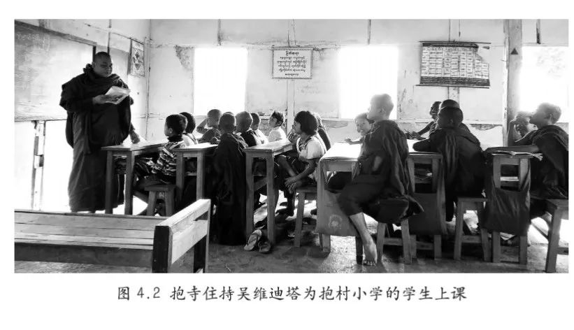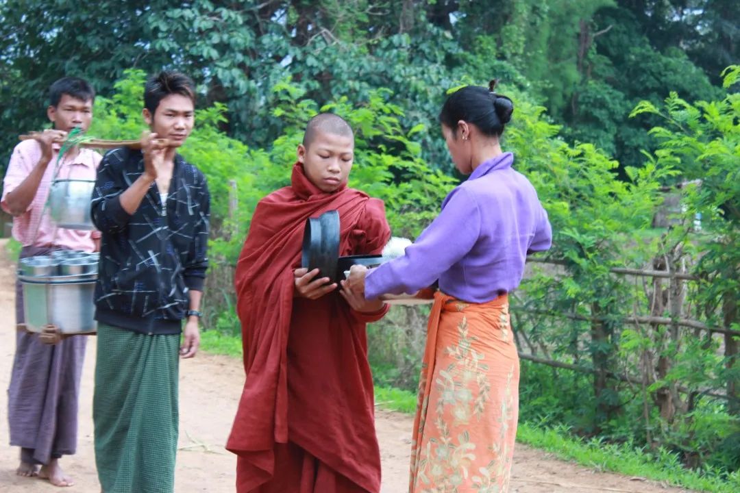 剃度仪式盛况空前,全村的村民都来庆贺,邻村的一些村民也闻风赶到,只为目睹一个中国人披上袈裟之后的样子。此时正值泼水节期间,是佛寺一年当中最热闹的时节,一些村民会选择在这个时候来到佛寺修行一段时间。在最高峰的时候,这座小小的佛寺中住着40多名僧侣,年龄最小的只有四五岁,最长的五六十岁。除了清晨进村化斋,以及傍晚一个小时的佛经晚课,其余时间都是自由支配。僧侣们三五成群,一起闲聊、踢球、看电视、坐禅,或者趁着人多势众对佛寺进行清理和修缮。我就是这样混迹于他们之间,用蹩脚的缅语与他们聊着各种八卦。但这种热闹的景象很快就消失了,在佛寺中住了一周或两周后,这些“临时僧侣”纷纷“还俗”,返回到家庭生活和农业生产之中去了。佛寺中的住持法号吴维迪塔,他只是一个比我大三岁的年轻人,却是整个佛寺中的最高首领,同时也是全村最受尊敬的人之一。吴维迪塔毕业于缅甸著名的玛索英佛学院,这是一名僧侣值得引以为豪的经历和资本。他是一个毫不守旧的开明僧侣,他曾对我说:“学习英语、汉语和计算机是我接下来将要开展的三件大事。”他还是一名铁杆英超球迷,对英超各支球队以及大多数球员都可以做到如数家珍。但他世俗的一面丝毫不影响他同时也是一名深刻的哲学家。他精通佛学奥义,并且在布道和辩论时激情四射、侃侃而谈。每天清晨,僧侣进村化斋时,吴维迪塔并不参与,他在佛寺的空地上迈着阔步,同时用洪亮的声音背诵着佛经,昂首挺胸,来来回回,目空一切。当然,作为维拉图的学生,吴维迪塔也是一名强硬的大缅族主义者,这使他有时候也会向村民散播一些让人生厌的言论。但毫不夸张地说,吴维迪塔是我田野中最重要的报道人,同时他也成为了我人生中的导师和挚友,我和他以深度访谈的方式度过了很多漫长的黑夜。