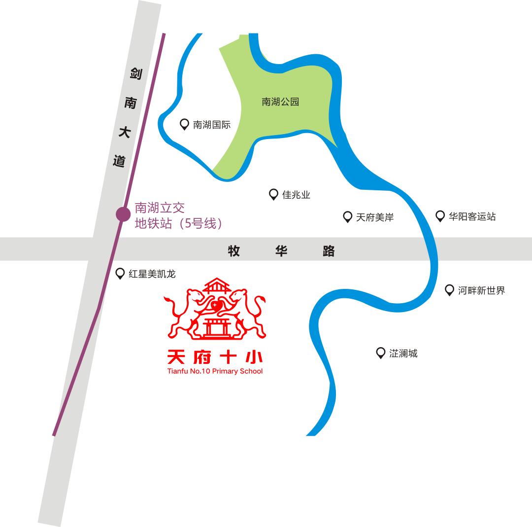 成都天府新区第十小学,位于天府新区祥鹤一街456号(紧临中海锦江城、川发天府上城),临近城市主干道剑南大道、五环牧华路段、南湖立交地铁站和瑞祥路站(公交站)。学校总占地面积约48亩,总建筑面积约2.4万平方米,设计规模36个教学班,1620个学位。