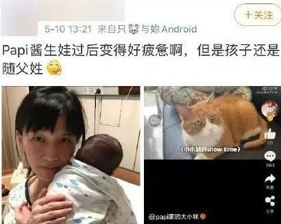 有网友说:“papi酱生娃过后变得好疲惫啊,但是孩子还是随父姓【吃瓜】。”