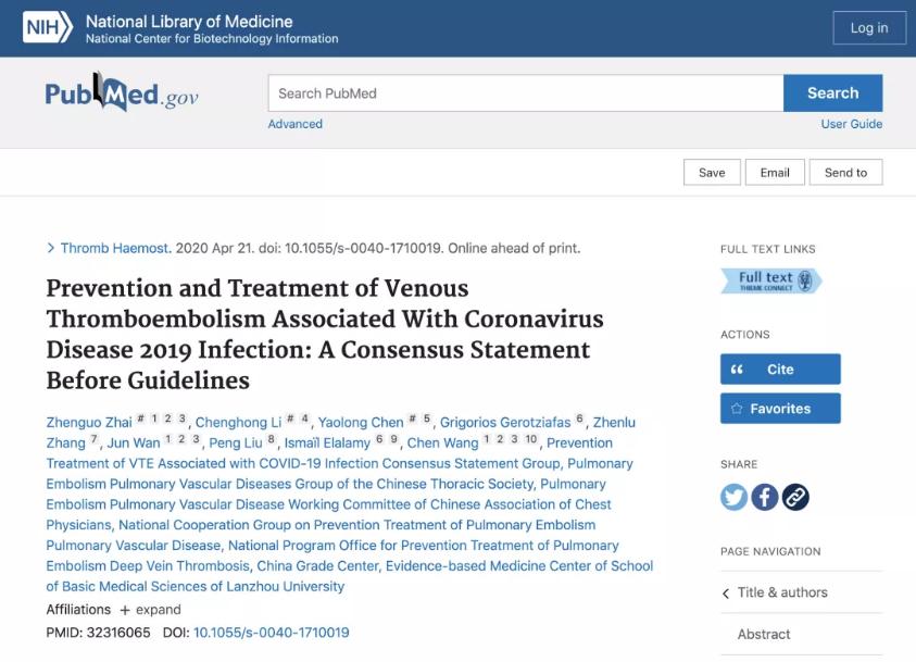 中欧专家发布《新冠肺炎并发VTE的防治专家共识》