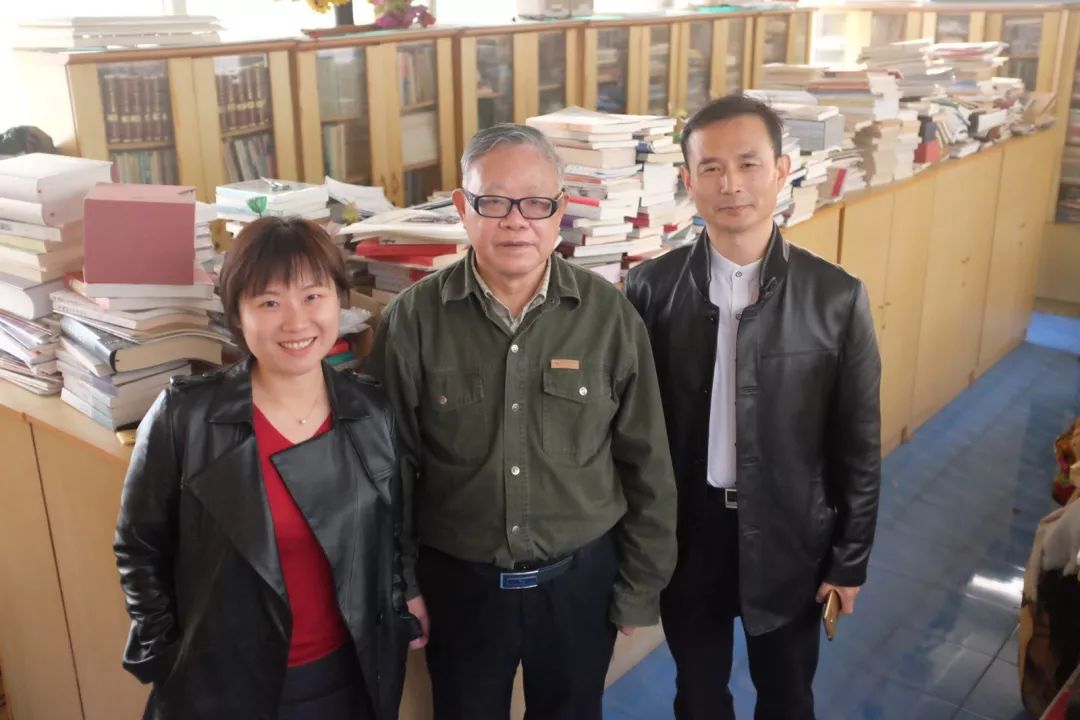 采访者吴越(左),叶永烈(中),上海作协组织人事处胡斌(右)在“游泳池”书房