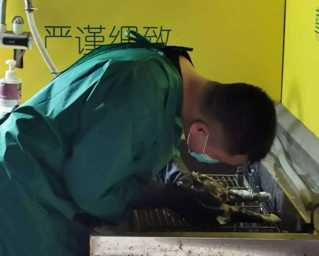 为叶梅服务的师傅姓夏,河南人,曾在北京做过两三年的宠物入殓,技艺娴熟。夏师傅仔细地为秋秋洗浴了两遍,一边轻柔地整理毛发,一边告知叶梅,他送走过很多像秋秋这样意外坠楼的猫猫,有些猫咪被送来时外伤比较严重,而秋秋摔下去时主要是磕到了鼻子,摔断了左腿,外观并无异常。师傅的语气温和而平缓,叶梅在旁静静听着,既心疼,又庆幸。秋秋生前能被温柔以待,总算离世时也未遭受过多痛苦。