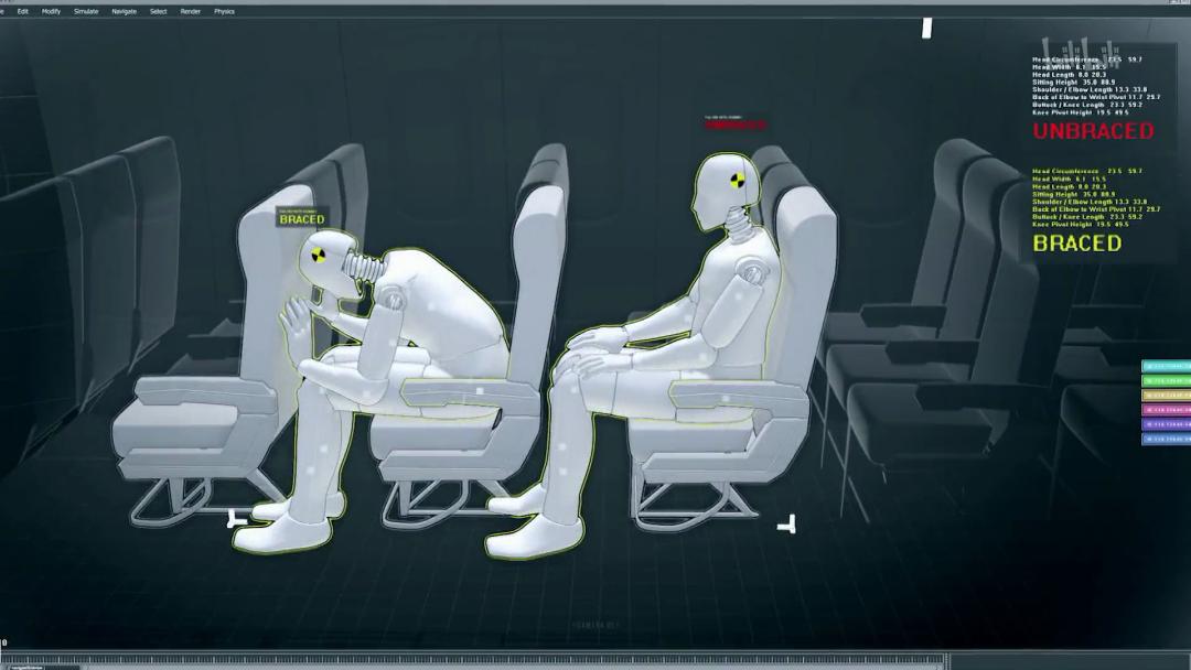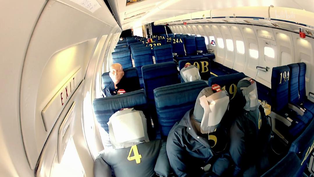 其中两个被安置在靠近过道的座位上,分别以常规坐姿和被认为更安全的紧急抱头姿势,另一个则被安排在远处靠近窗口的座位上。