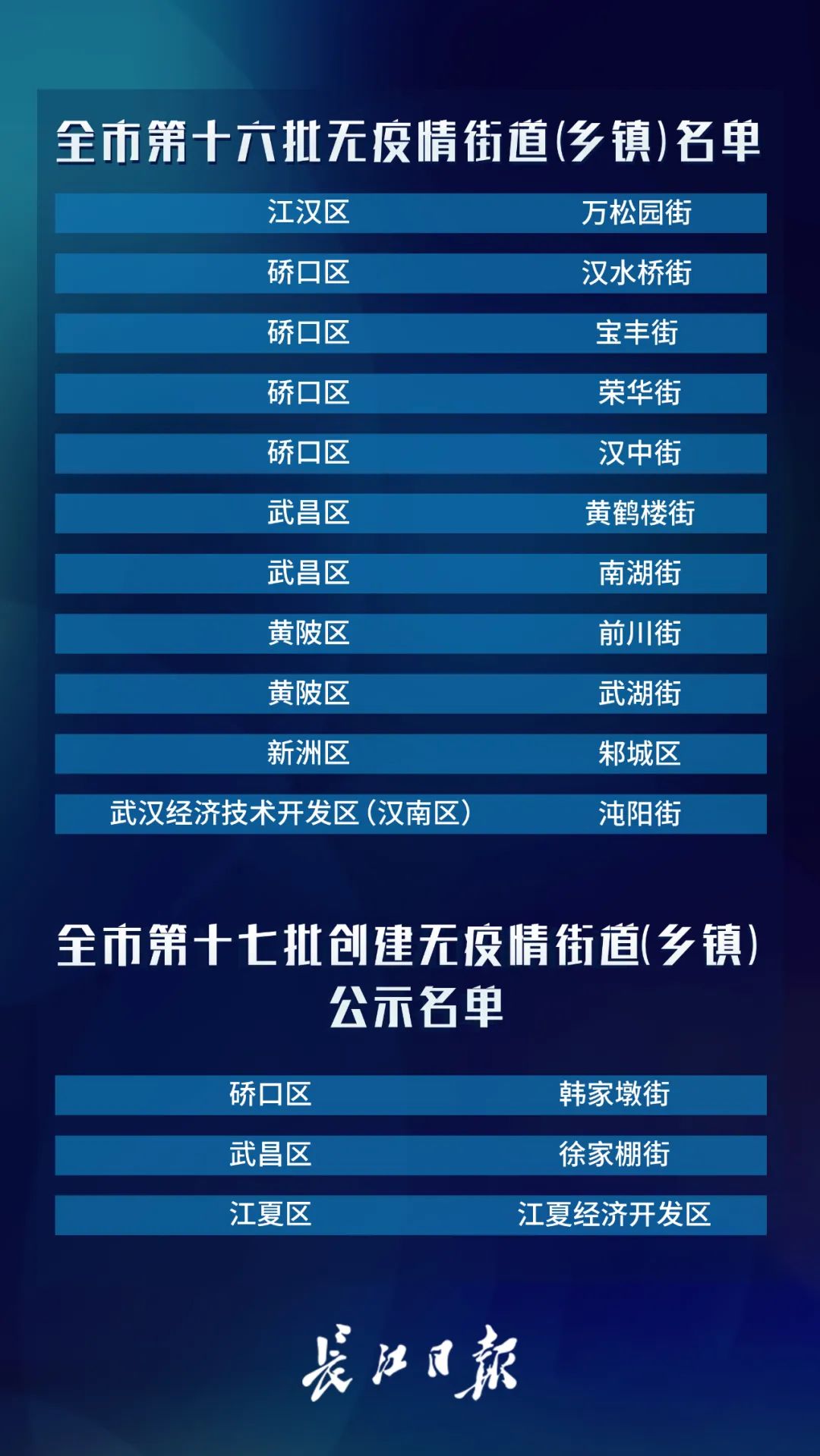“湖北日报”微信公号5月16日消息,15日,武汉市新冠肺炎疫情防控指挥部社区疫情防控组公布全市第二十次评定的无疫情小区、社区、村(大队)名单。