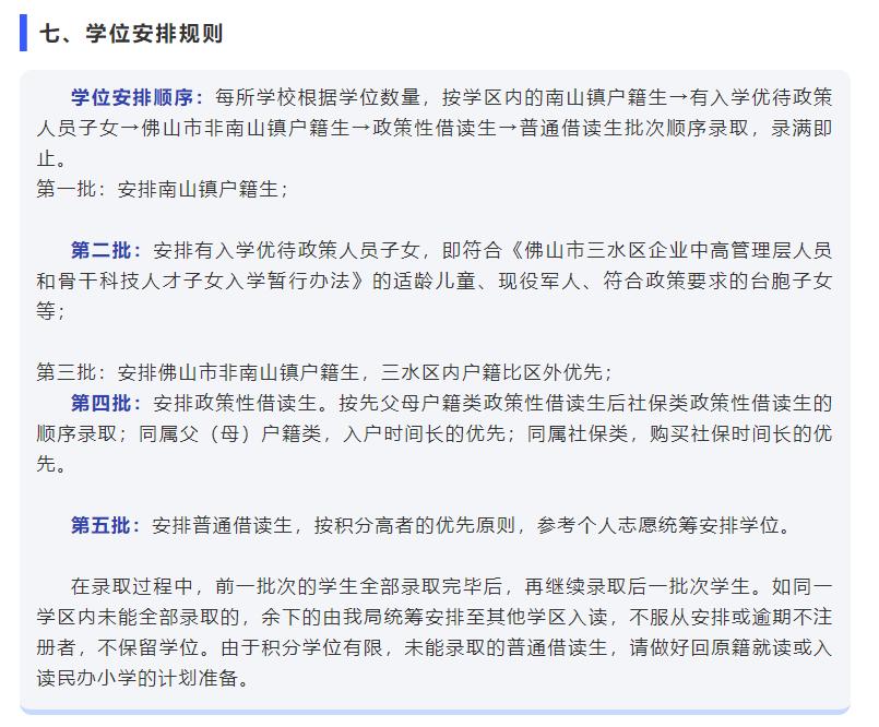 第七批,安排父母一方为西南街道户籍的三水区外佛山市户籍学生;
