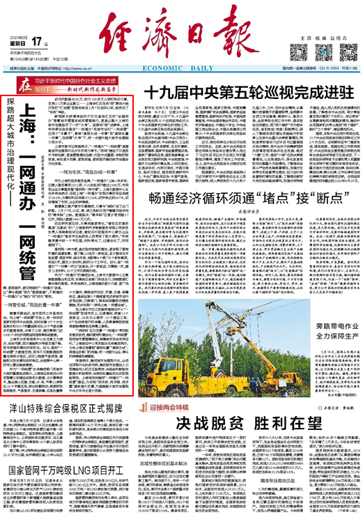 经济日报头版头条聚焦:上海,一网通办一网统管