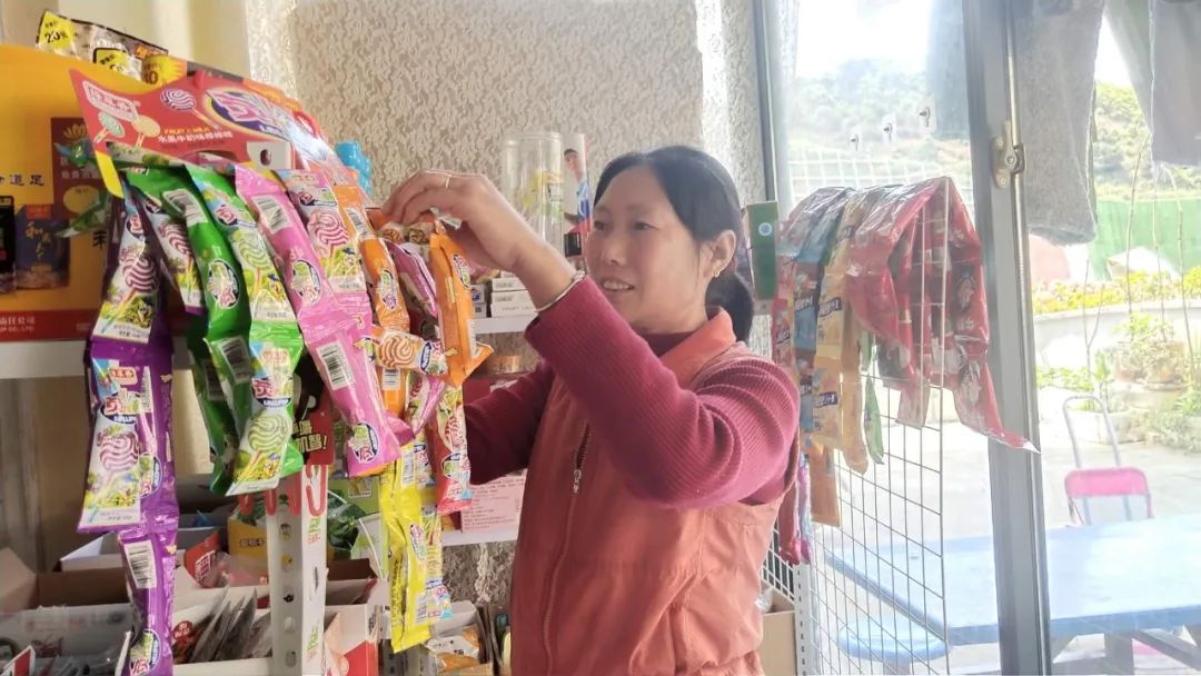 在A8栋一单元104室,我们见到了从杉树镇寿溪村搬迁到来的任明翠一家。她们家6口人分到的是120平方米的大户型,户型较好,客厅宽,她们家隔壁就是社区卫生室,人流量较大。脑子灵活的任明翠利用客厅简单改造之后,开起了小卖部。