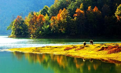 更有掩映在森林之中的鸳鸯湖