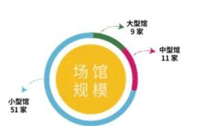 全市博物馆设施规模总量为42.5万平方米。大型馆(建筑规模大于10000㎡)9家;中型馆(建筑规模为4000~10000㎡)11家;小型馆(建筑规模小于4000㎡)51家。