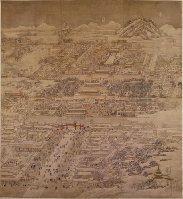 比如说,在建筑和景物的铺排上,由近及远,近大远小,呈现出深远的透视感,这显然是受西方焦点透视的影响。