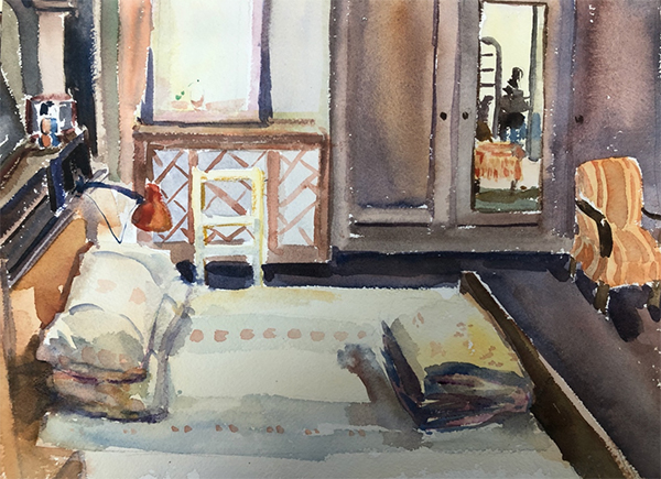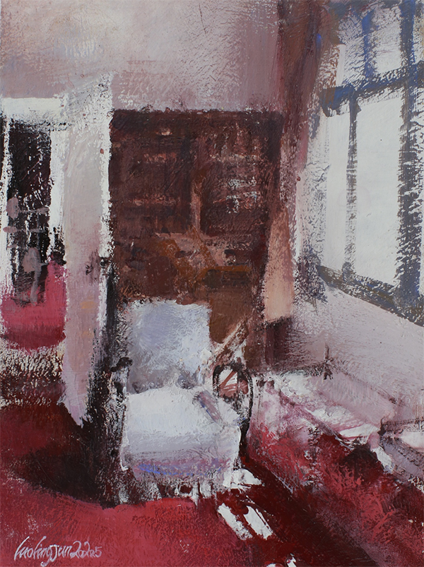 据悉,四位画家分别来自不同的城市,拥有不同的职业身份,甚至是不同的年龄层,他们亦代表着不同的角度对巴金故居的理解。罗雪村从1987年开始就致力于画名人故居,到访过中国大部分乃至世界各地的人文景观,虽大部分都是运用铅笔、钢笔这样简单的工具绘制的简笔素描,但每一幅都有可说的故事,融汇了其对这些文人的敬意;刘斌与罗陵君都有画家以外的另一个身份,就是美术教师,他们都用油画的形式来展现自己的理解,用笔细腻、层次分明、色彩柔和,对光线的刻画尤为精细;四位中年龄最小的画者薛寒冰,目前还是在校大学生,她曾多次不远千里来巴金故居写生,对自己的作品与巴金故居的各角各落有着自己的感情与体悟,水彩作品颜色丰富,更充满了年轻人的朝气与时代感。